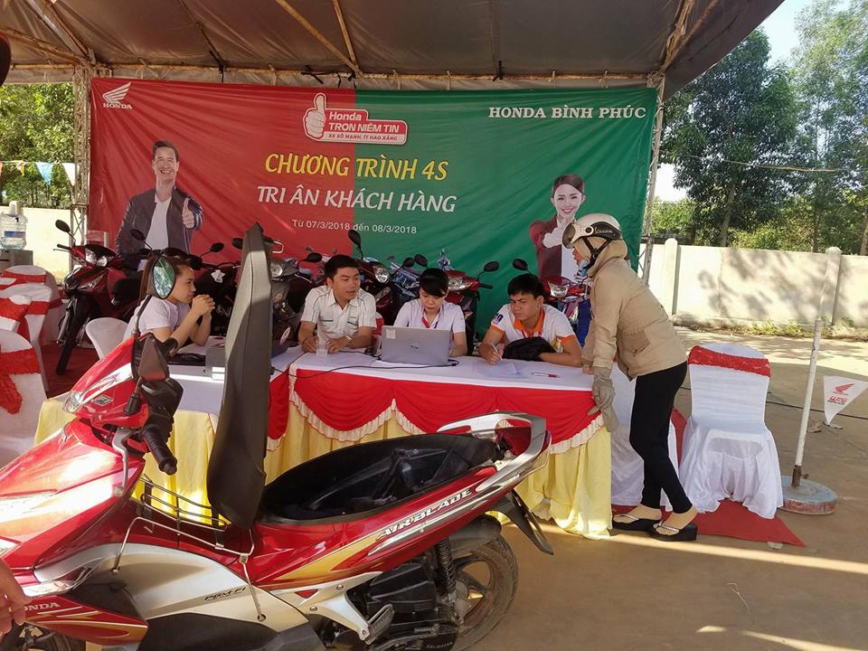 Chương trình 4S tri ân khách hàng cùng Honda Bình Phúc diễn ra vào 2 ngày 07-08/03/2018 tại nhà văn hóa ấp 2 xã Đồng Tâm, Đồng Phú, Bình Phước đã kết thúc, với sự quan tâm của khách hàng, người dân địa phương và khu vực lân cận, chương trình đã diễn ra tốt đẹp với nhiều phản hồi tích cực từ người tham gia.