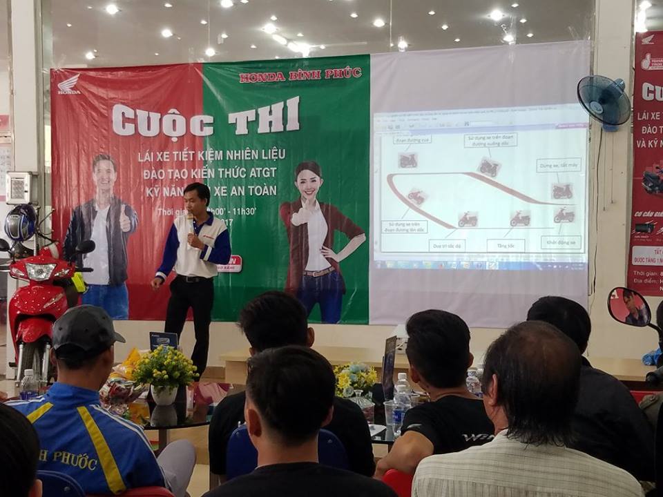 Khách tham gia chương tình được trải nghiệm đo mức tiêu hao nhiên liệu trên chính chiếc xe gắn bó hàng ngày của mình; hướng dẫn kỹ năng lái xe an toàn và kiến thức ATGT với phần thi lý thuyết và thực hành trên máy RT. Tất cả khách hàng tham gia đều được tặng 1 nón bảo hiểm và thay nhớt miễn phí.