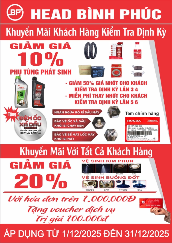 GIẢM GIÁ 10% PHỤ TÙNG PHÁT SINH