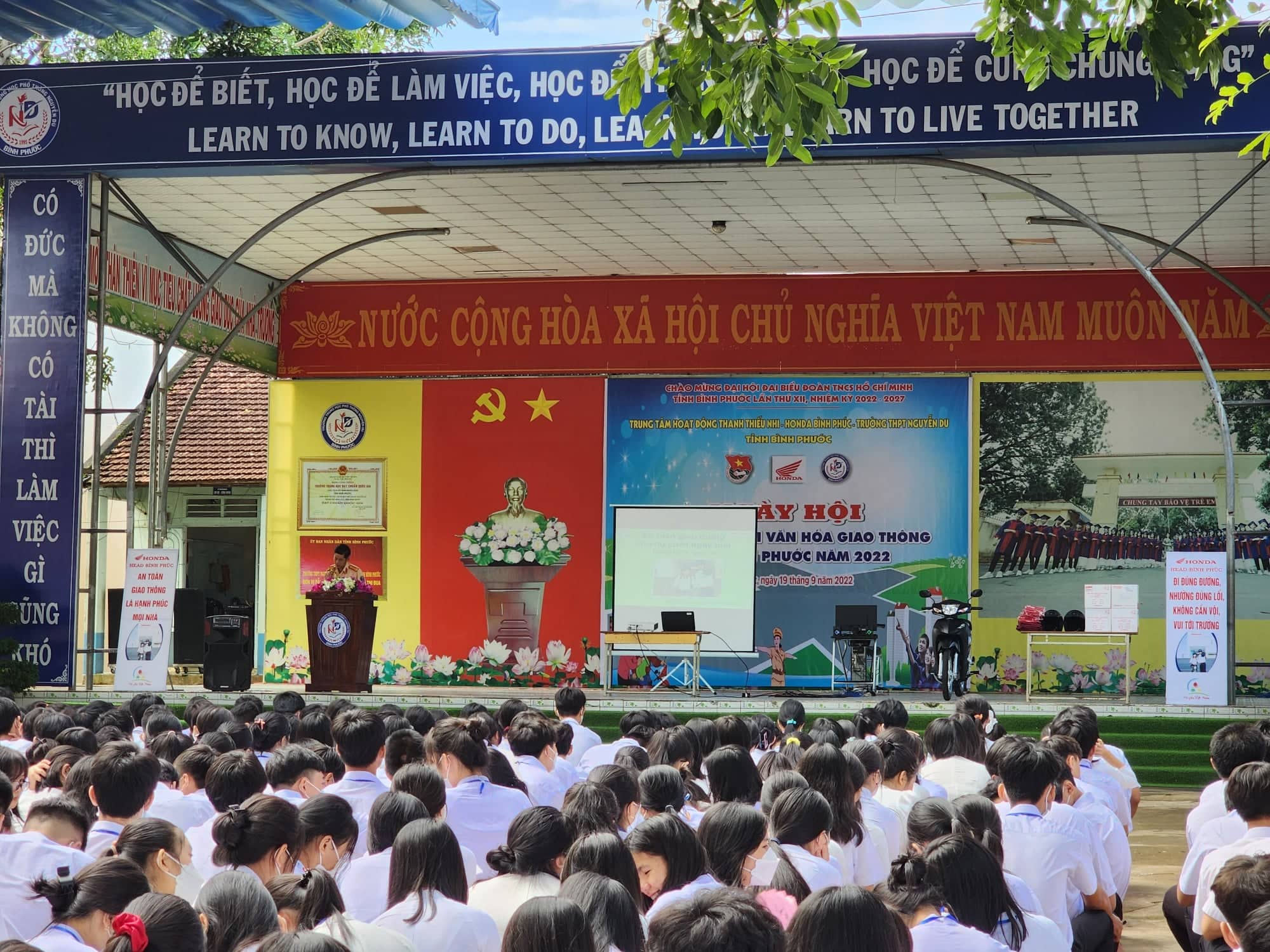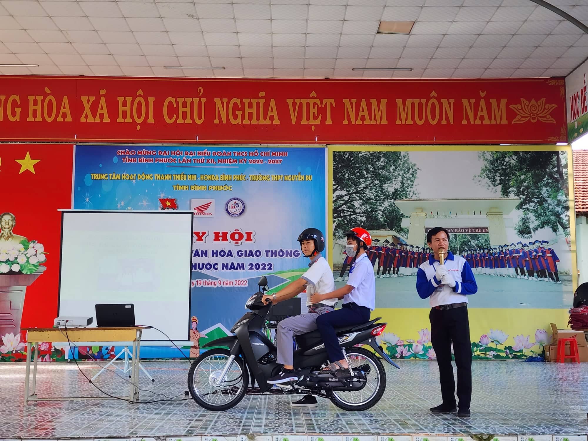 Sáng nay, ngày 19/09/2022, tại trường THPT Nguyễn Du, Được sự cho phép của Ban giám hiệu nhà Trường, HEAD Bình Phúc kết hợp với Phòng CSGT Công An tỉnh Bình Phước & Trung Tâm Hoạt Động Thanh Thiếu Nhi đã phối hợp tổ chức chương trình tuyên truyền “NGÀY HỘI THANH NIÊN VỚI VĂN HÓA GIAO THÔNG 2022”.