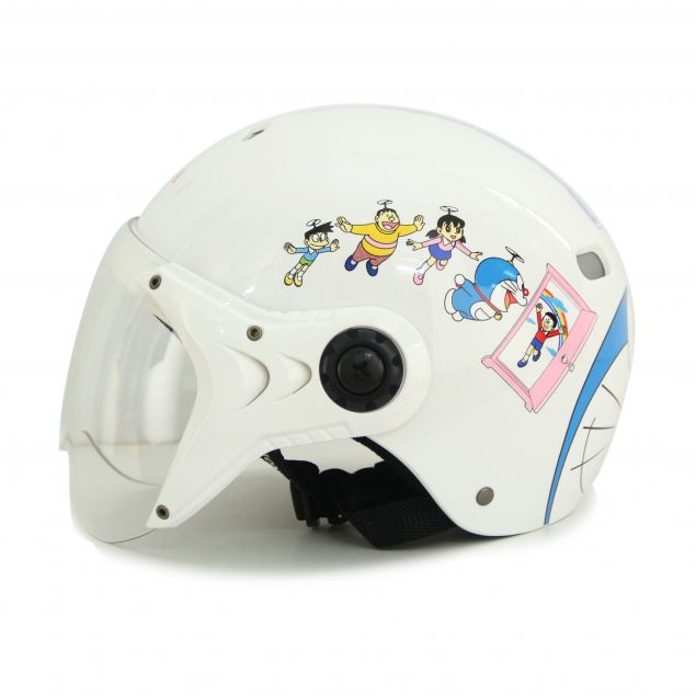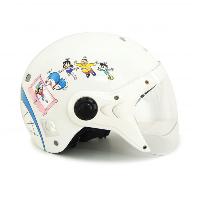 Trọng lượng mũ nhẹ, vỏ mũ được làm từ vật liệu nhựa nguyên sinh nên rất an toàn, bền, dẻo dai và chịu lực tốt. Khuôn mũ vừa vặn, ôm khít đầu, tạo cảm giác an toàn. Bên cạnh đó, lỗ thoát gió thông minh giúp khí thoát gió tốt và rất thoải mái khi đội. Hình ảnh chú mèo máy Doraemon và các bạn đã được Honda Việt Nam mua bản quyền chính thức để tạo nên những họa tiết ngộ nghĩnh, dễ thương trên chiếc mũ.